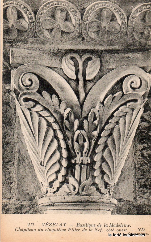 Vézelay -217- Basilique de la Madeleine - Chapiteau du cinquième Pilier de la Nef, côté ouest - Ornements