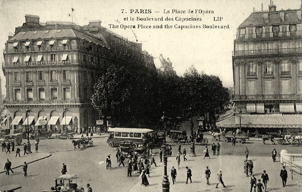 7 - PARIS - Autobus circulant sur la Place de l'Opéra et le Boulevard des Capucines.