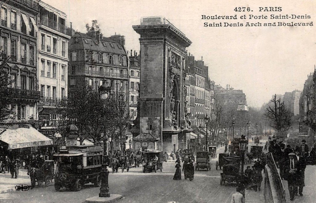 156 - PARIS - L'Omnibus " Madeleine-Bastille " passe devant la Porte Saint-Martin.