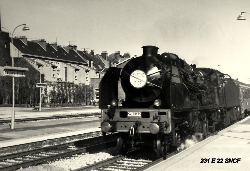 Locomotive à vapeur, type " Pacific ", n° 231 E 37, en tête d'un train de voyageurs de la SNCF.
